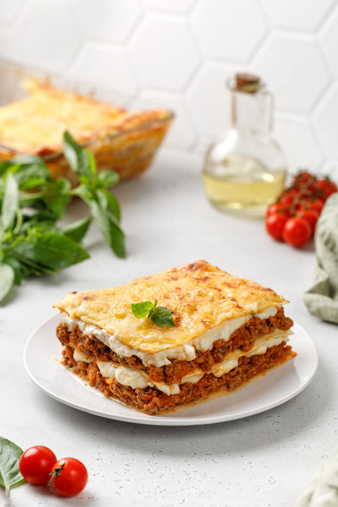 10. Retire do forno e deixe a lasanha descansar por alguns minutos antes de servir.